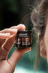 Con la piel limpia, aplica una pequeña cantidad de Bálsamo Secreto en la zona inferior del contorno de ojos ( ½ lenteja para ambos ojos).